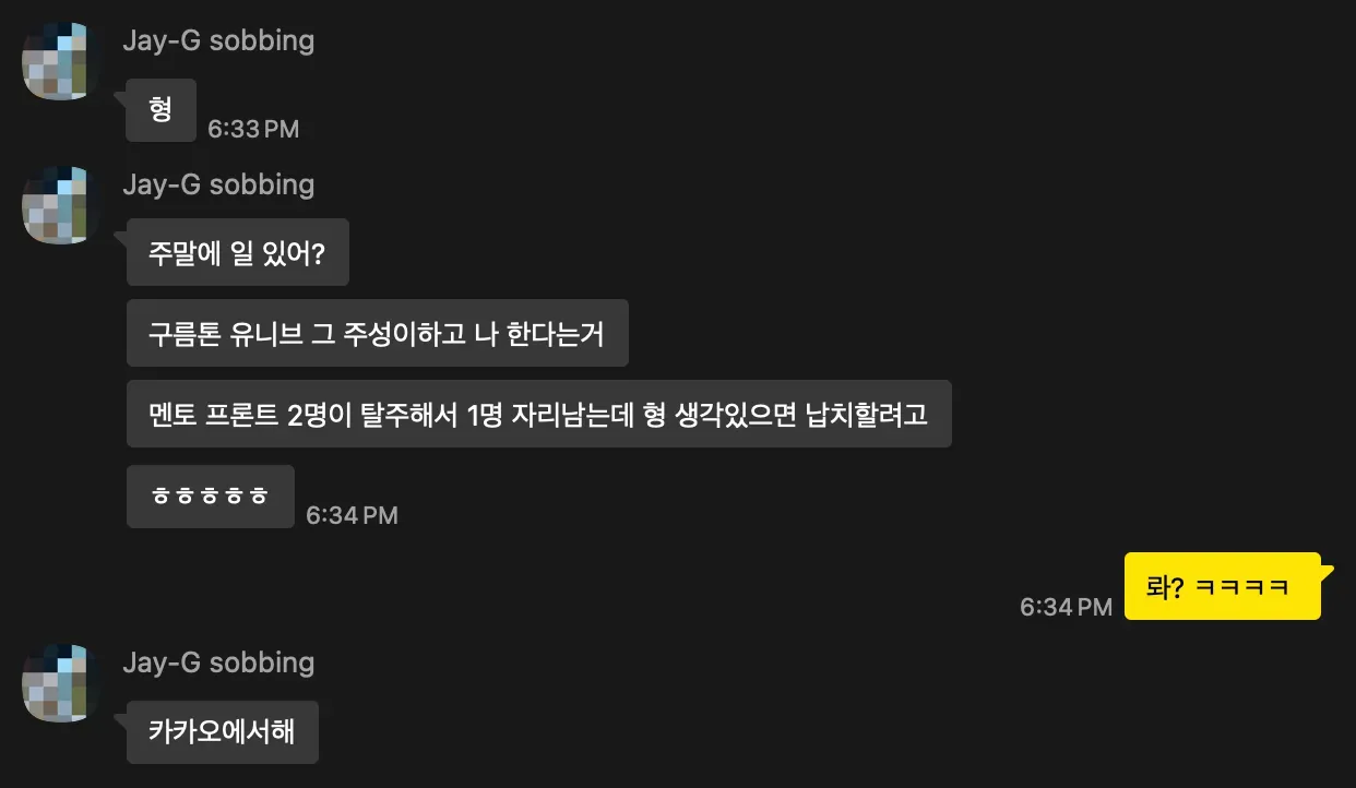 구름톤 제주에서 같이 신나게 달렸던 동생이 멘토링을 제안을 해왔다.