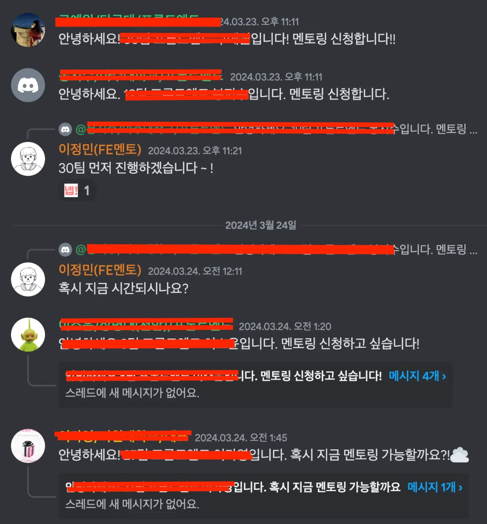 불안감과 긴장감으로 가득했지만, 멘티분들의 감사 인사를 받고 시간이 지나면서 점차 자신감을 얻을 수 있었다.